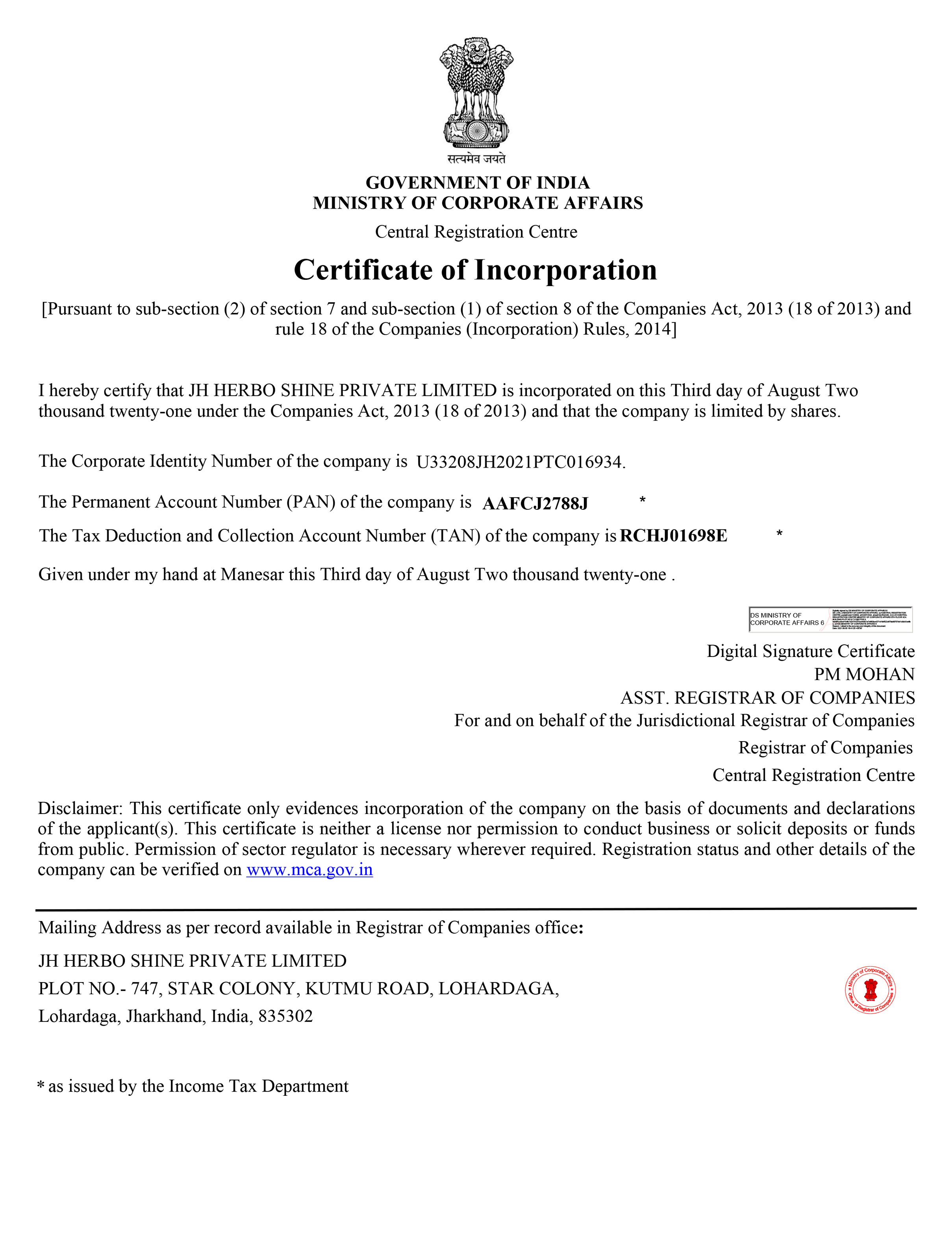 Certificate Of Incorporation